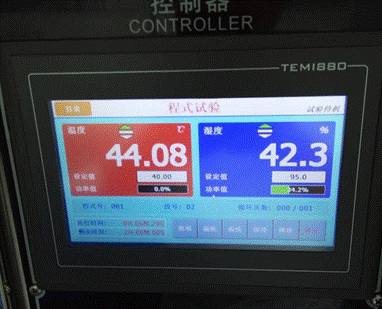 韩国进口,中英文液晶显示LCD触摸式面板,画面对谈式输入数据, 温湿度同时可程控,背光灯17段可调,曲线显示,设定值/显示值曲线。可分别显示多种警报,故障发生时可通过屏幕显示故障,消除故障,消除误操作。多组PID控制机能,精密监控功能,且以数据形式显示于屏幕上。
