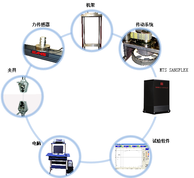 电气系统采用MTS公司研发的SANSFLEX试验机数字闭环控制与测量系统。该系统是MTS公司采用国际最先进技术,研制开发的试验机新型电气控制系统,具有全数字闭环控制、多通道采集等功能。该系统功能强大、数据处理准确、操作简单、使用维护方便。可实现力、变形、位移三闭环全数字控制。控制频率高达2000Hz; 测量分辨力高达1/600000;最多可扩展至8路高精准数据采集通道;采用以太网通讯,可实现跟准确更可靠的采样数据高速传输;具有TEDS自识别功能;多重保护:具有过载、过流、过速、限位等多种安全保护方式。
